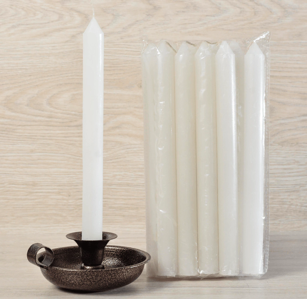 Velas sin aroma para candelabro. Presentación en paquete x 10 unidades.