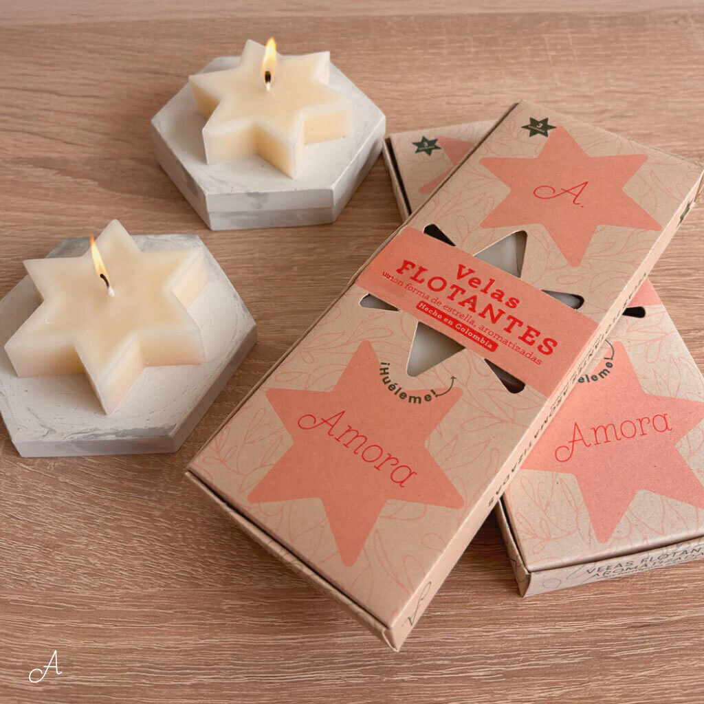 - Caja de velas estrella 6 puntas x 3 unidades.